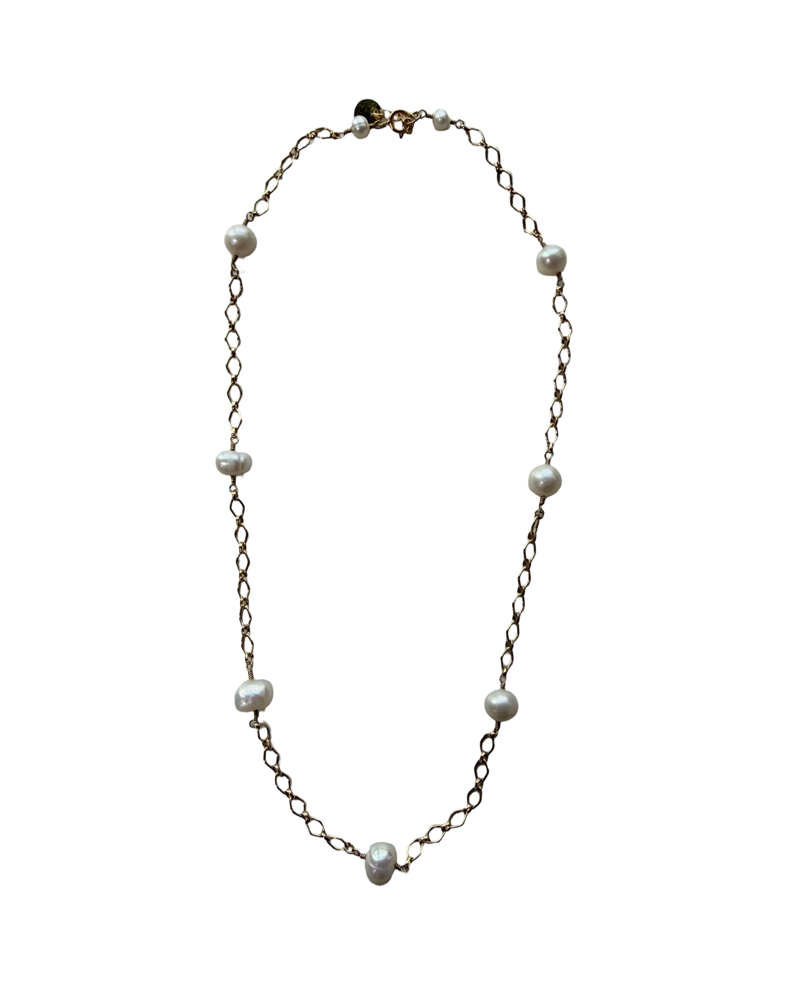 Handmade Gold Chain Necklace with Natural White Pearl